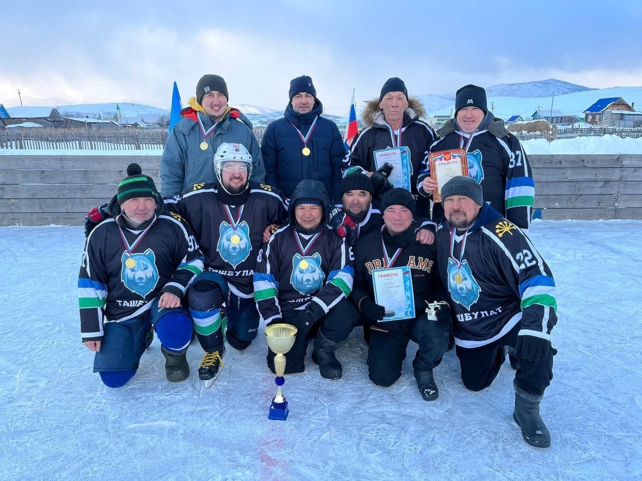 Илшат Ҡужәхмәтов, Алгиз Шакирйәнов, Илнур Ялалов, Нияз Билалов, Нәғим Харисов, Рәмзил Мирсаев состаывндағы Ташбулат командаһы беренсе, байымдар икенсе,