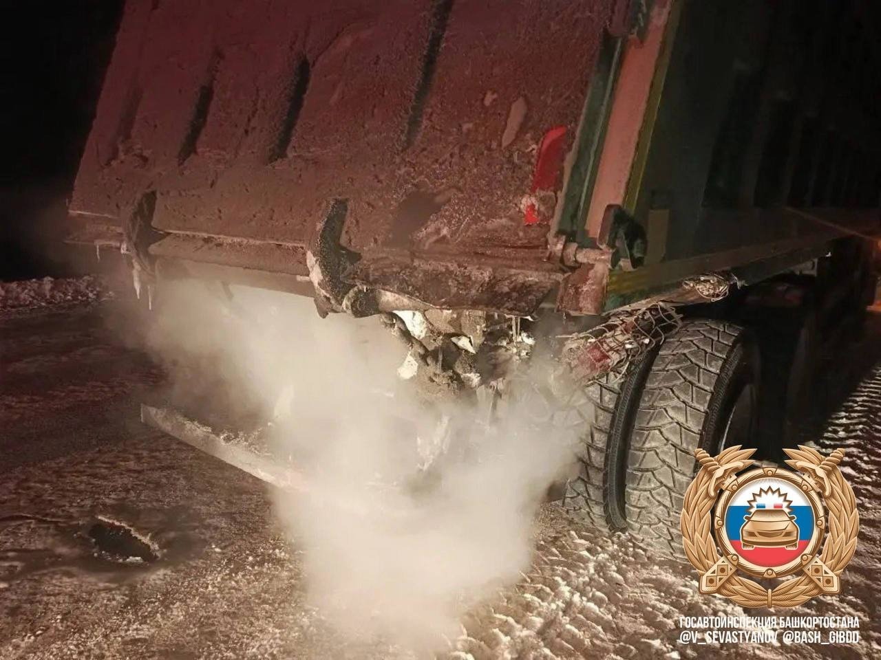 Вчера вечером на 104 км дороги Белорецк - Миасс - Учалы 45-летний водитель Киа Соренто допустил столкновение с попутным грузовиком Хово. Водитель легковушки на скорости врезался в кузов большегруза сзади.